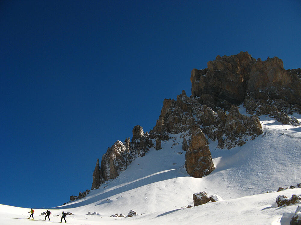 Rv Ecrins_2015_20_Premières lueurs du soleil au pied de la barre. -