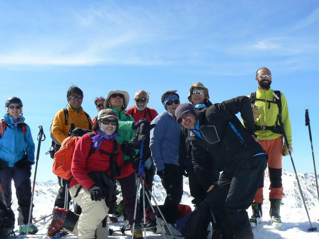 Virginie En partant de la gauche : François, Michel, Manu, Ambre qui referme la bouteille de calva, François, Nadine, Fabien. Merci Manu pour l'organisation : on a bien profité de la "fenêtre météo", qui s'est ouverte juste pour nous ! -